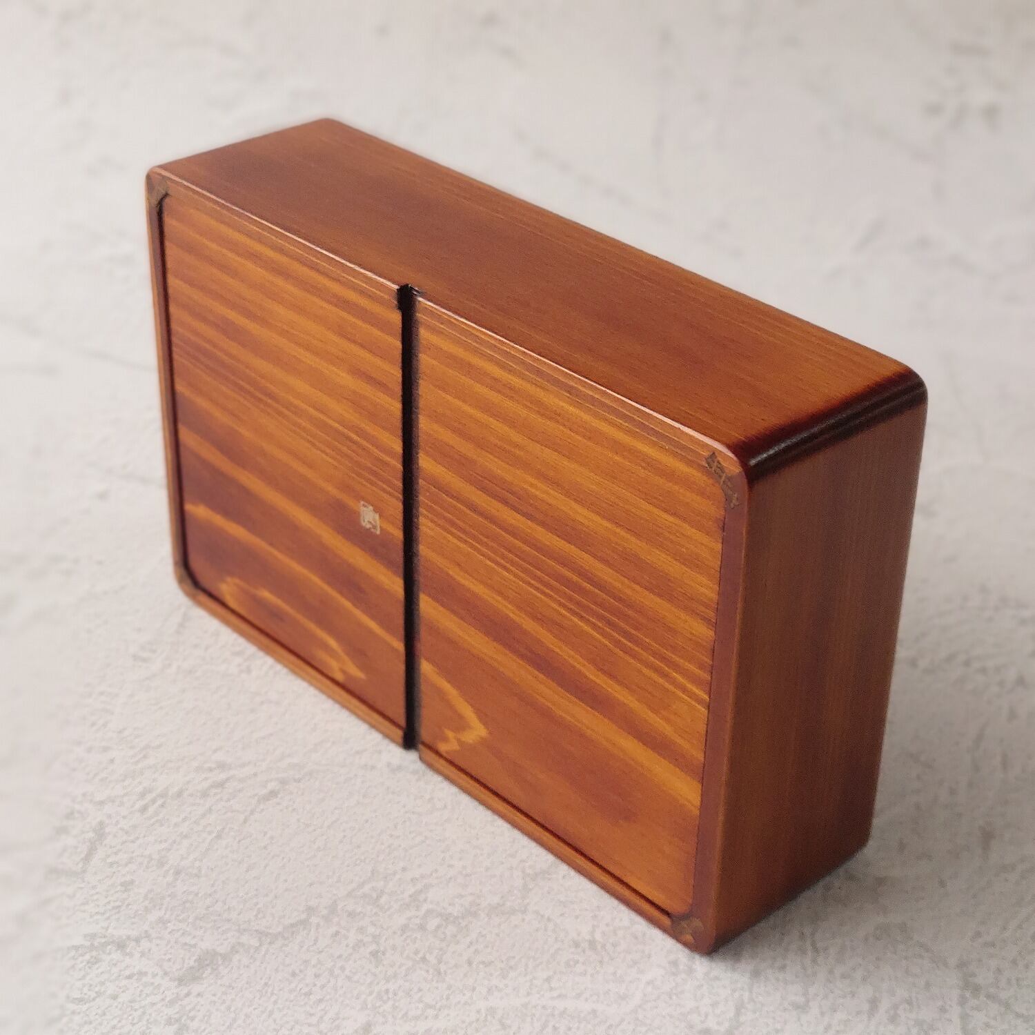まるで「玉手箱」のようなこちらのお弁当箱、ひのきを箱組みでつくり、仕上げに拭き漆を施しています。